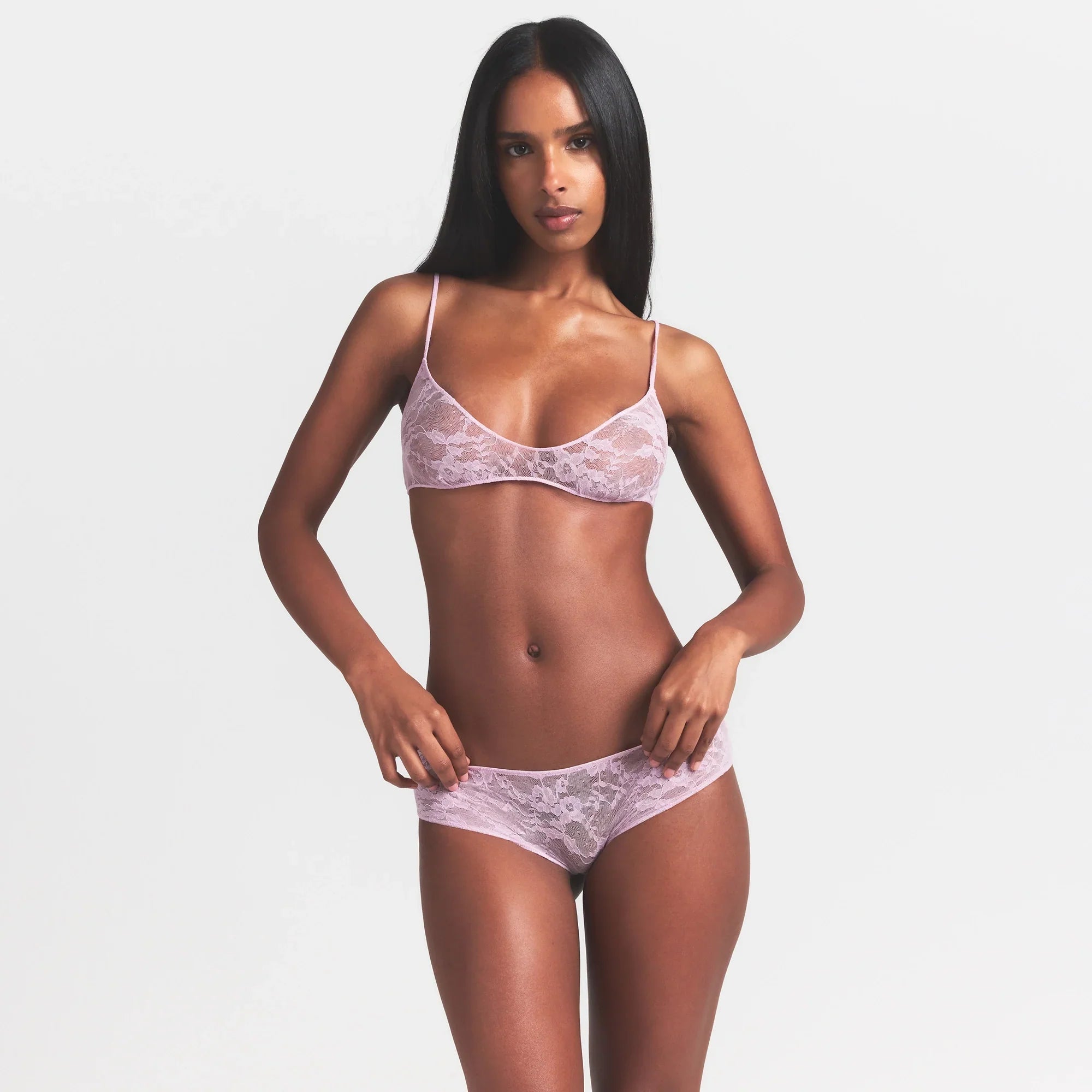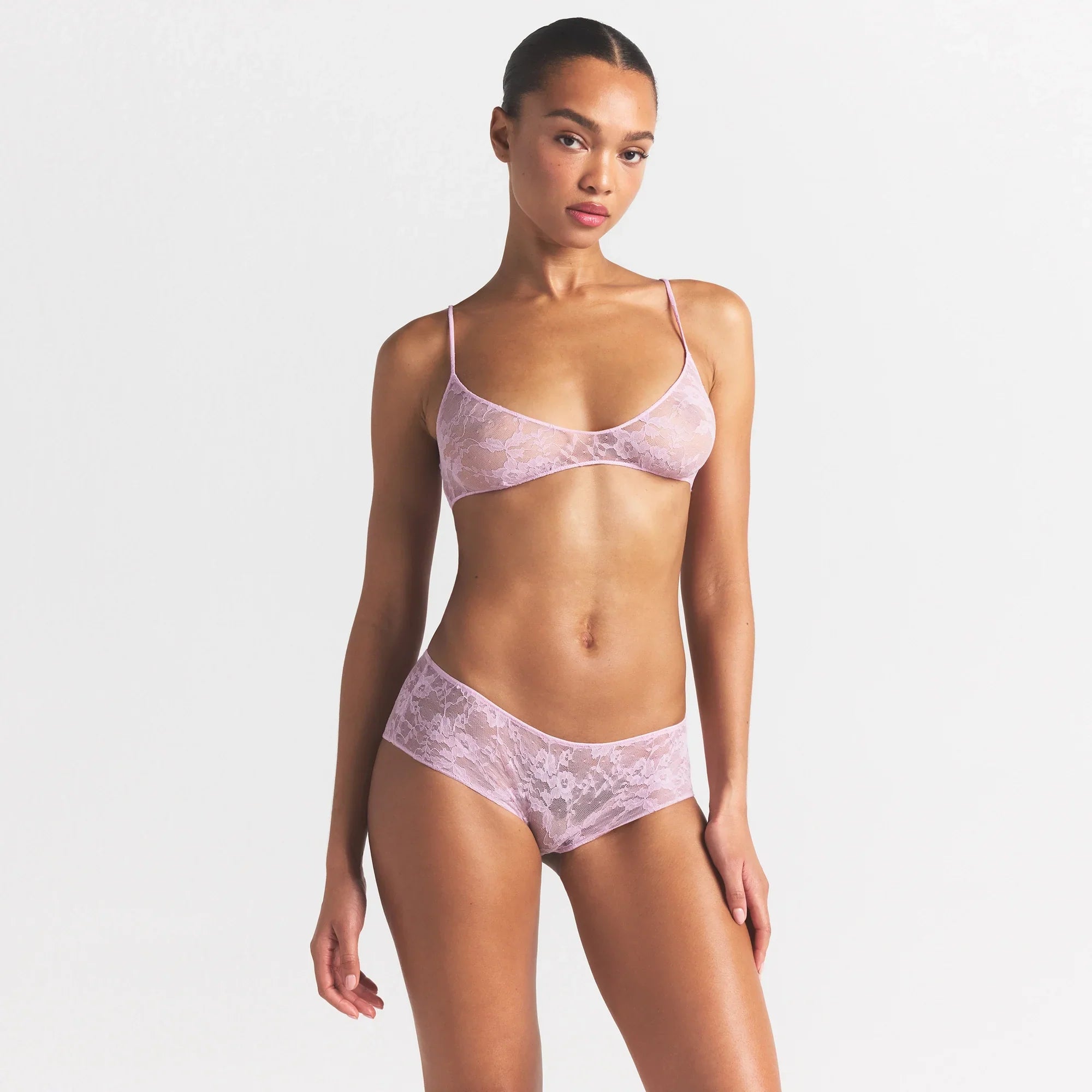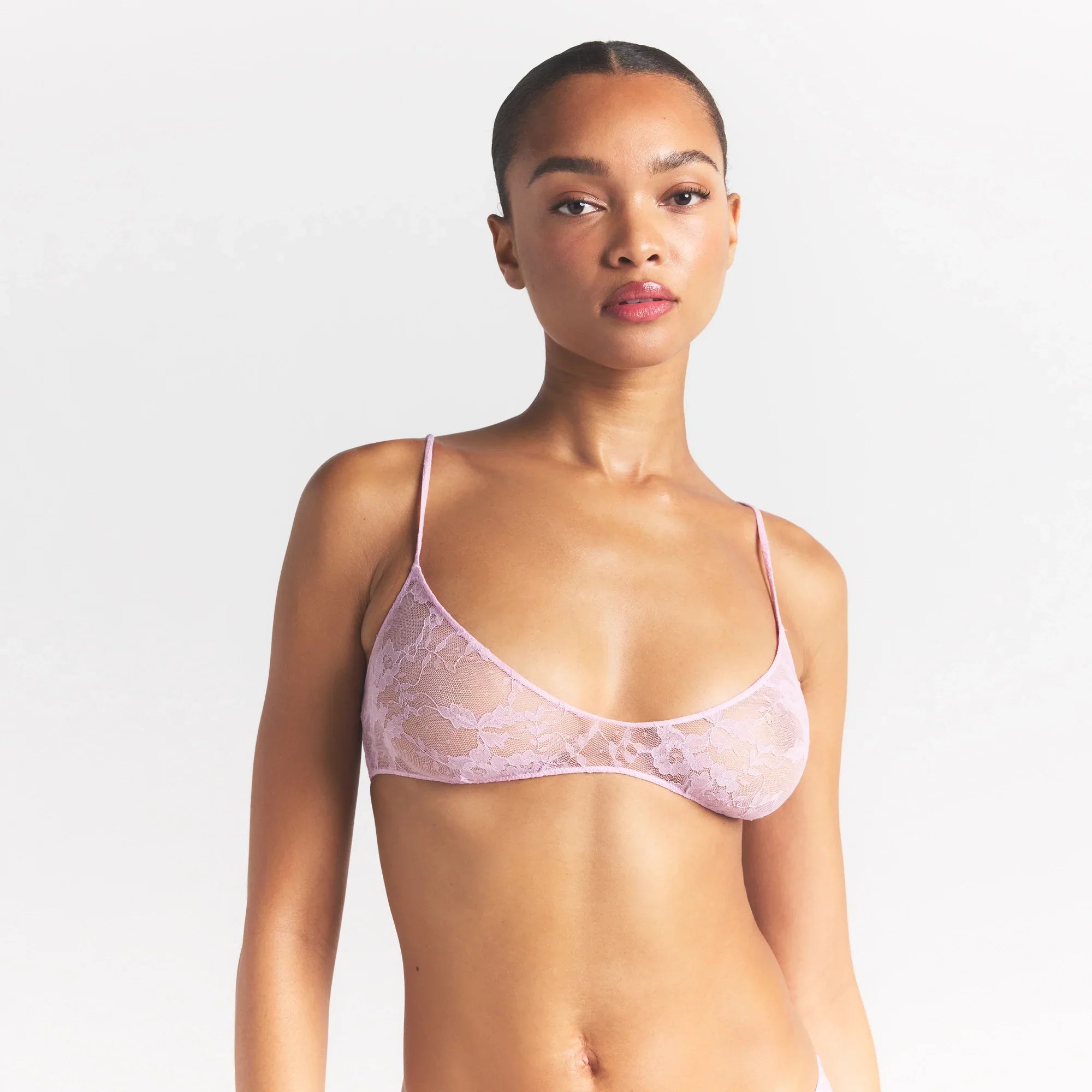 SKIMS STRETCH LACE SKIMPY SCOOP BRALETTE | BABY PINK
