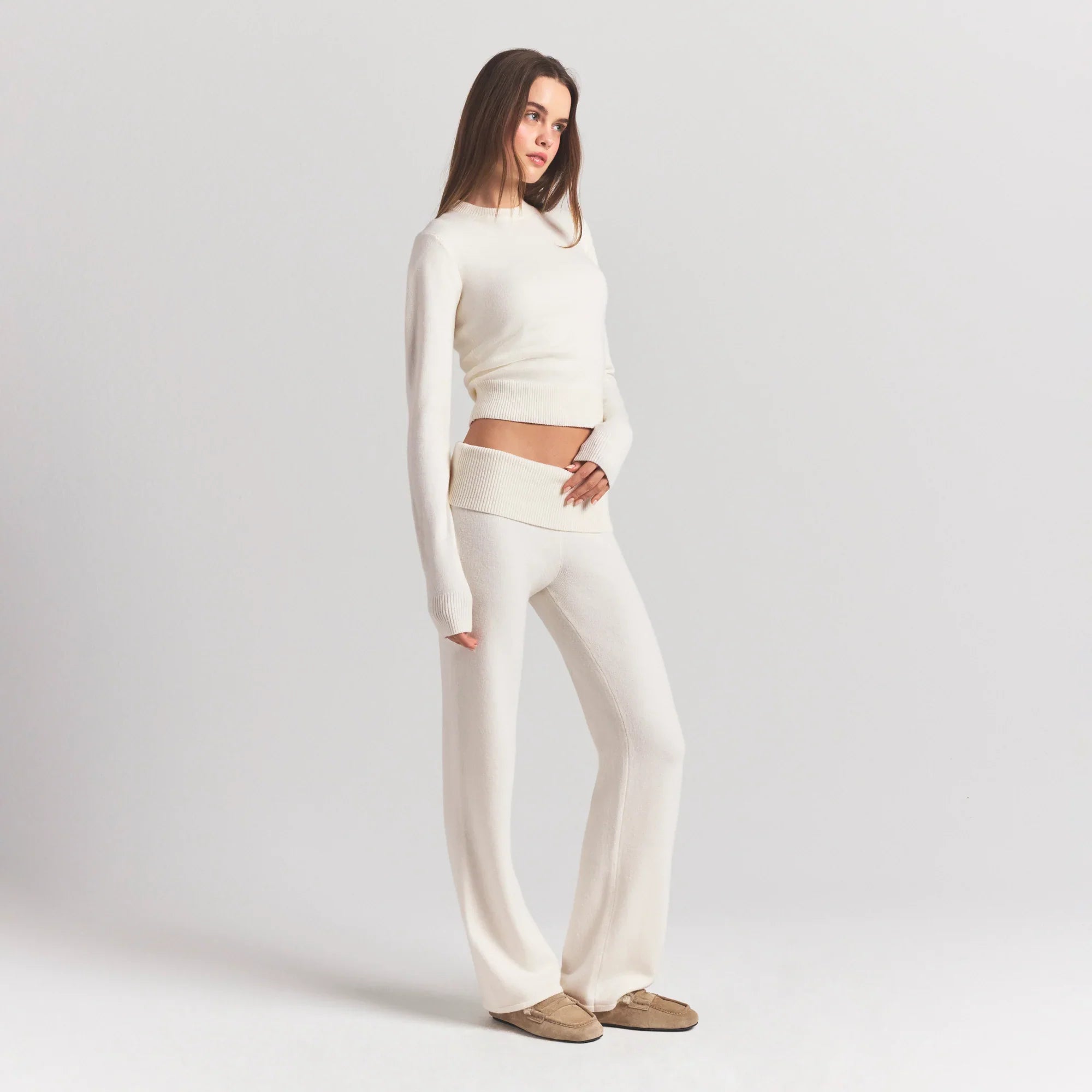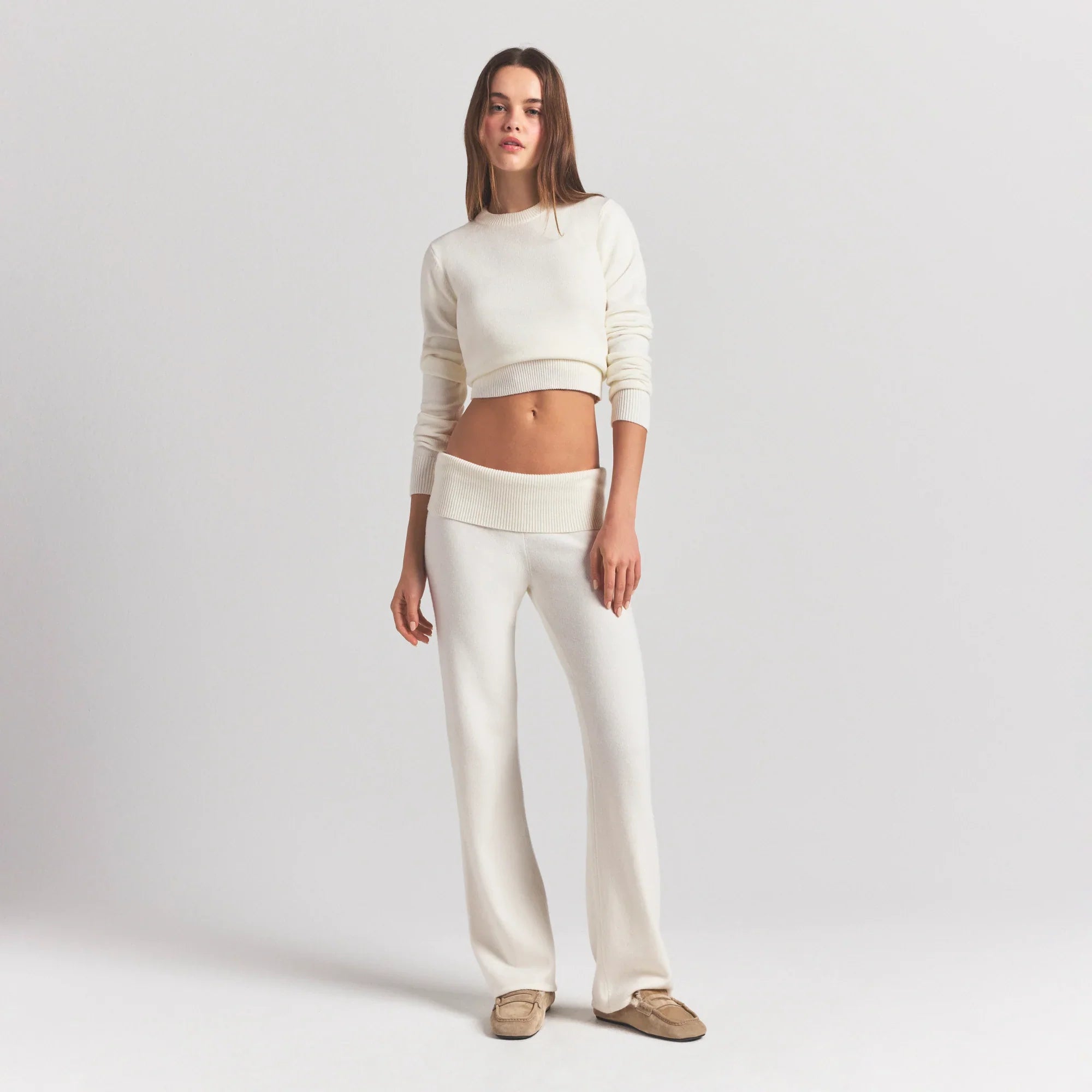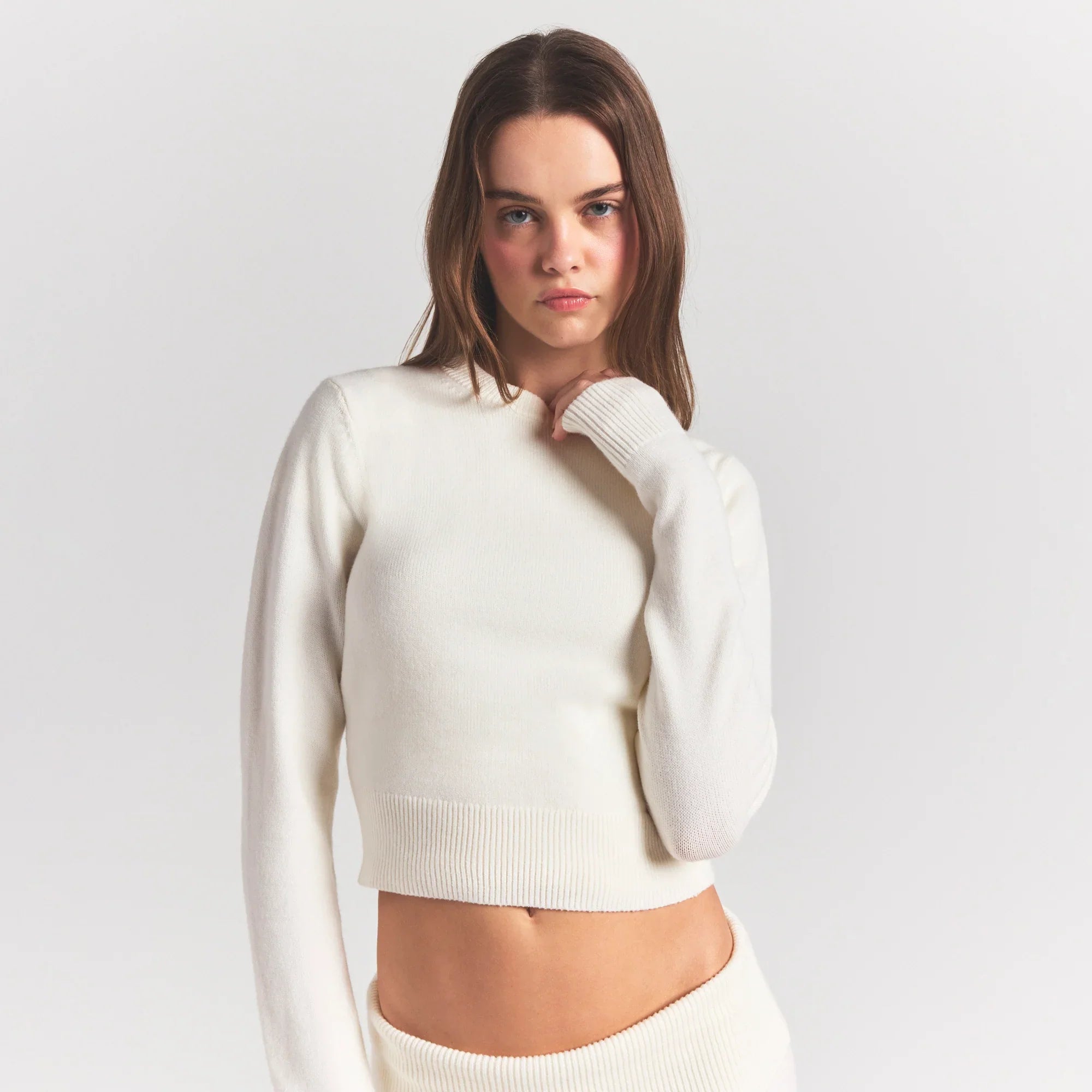 SKIMS SWEATER KNITS RIBBED LONG SLEEVE FITTED CREW NECK | IVORY