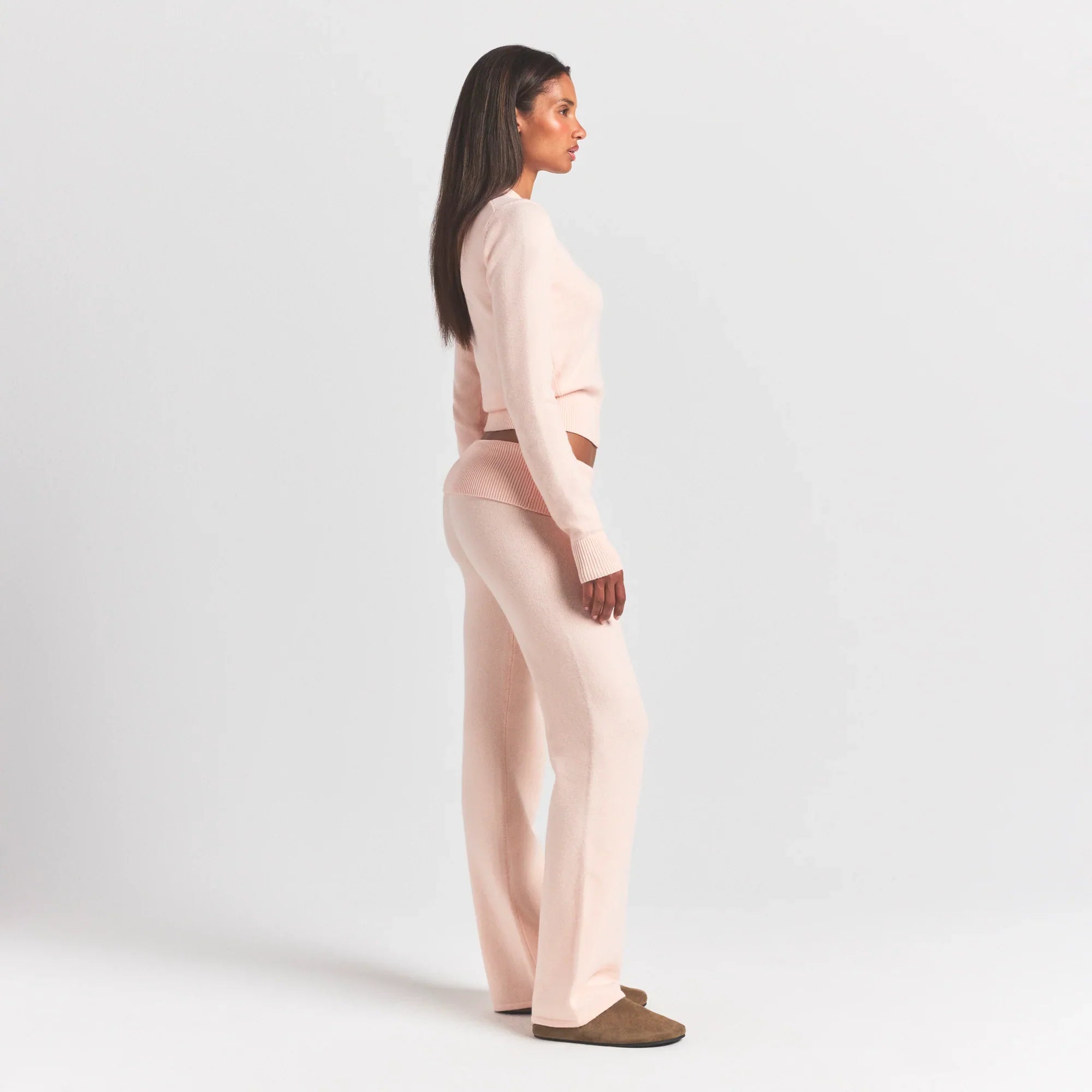 SKIMS SWEATER KNITS RIBBED LONG SLEEVE FITTED CREW NECK | PRIMROSE