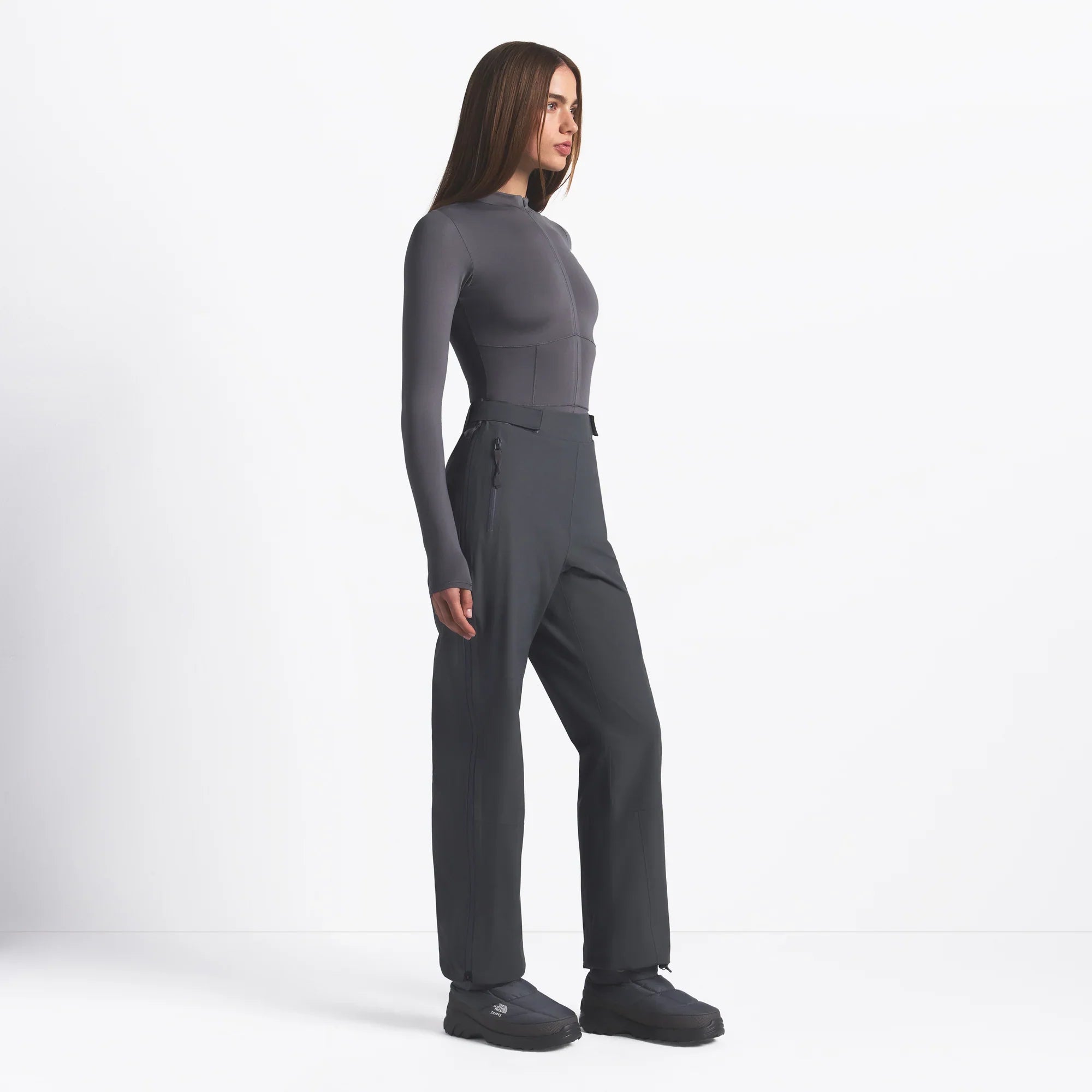 Alpine tarzı, yükseltilmiş. SKIMS'in imza niteliğindeki vücut hatlarını vurgulayan kesimi ve The North Face'in yapısı, kıvrımlarınıza uyum sağlayan bu performans pantolonunda buluşuyor.