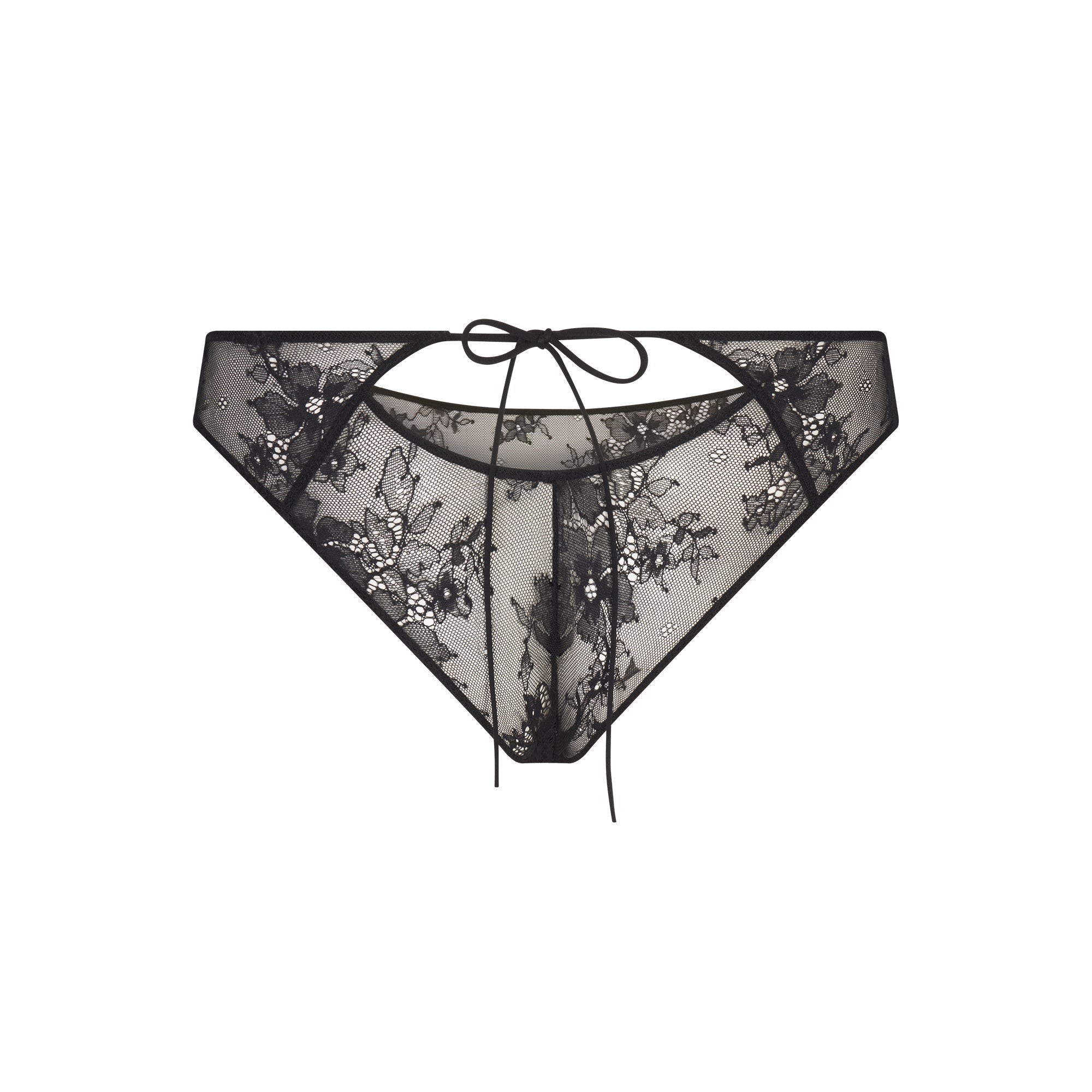SKIMS ULTRA FINE LACE PEEK-A-BOO BIKINI | ONYX