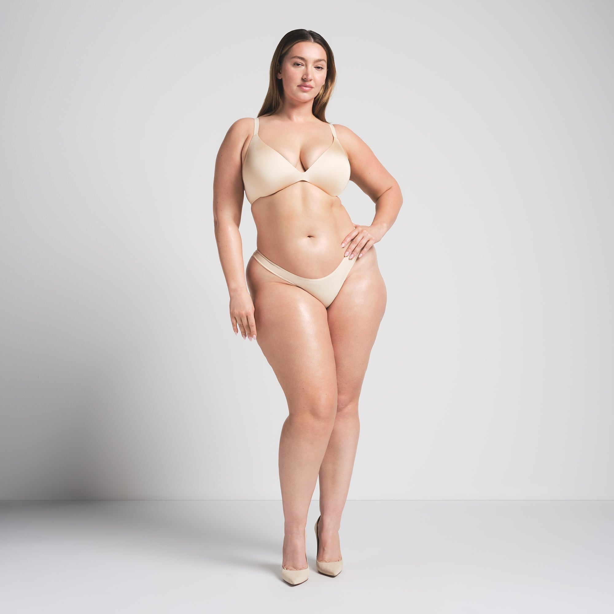 Bu sütyen, estetik dengeyi sağlamak için özenle tasarlanmış ve kaliteli malzemelerle üretilmiştir. Geniş mikrofiber kanatları, pürüzsüz bir görünüm elde etmenize yardımcı olurken, tonal silikon SKIMS logosu şıklığına şıklık katmaktadır.