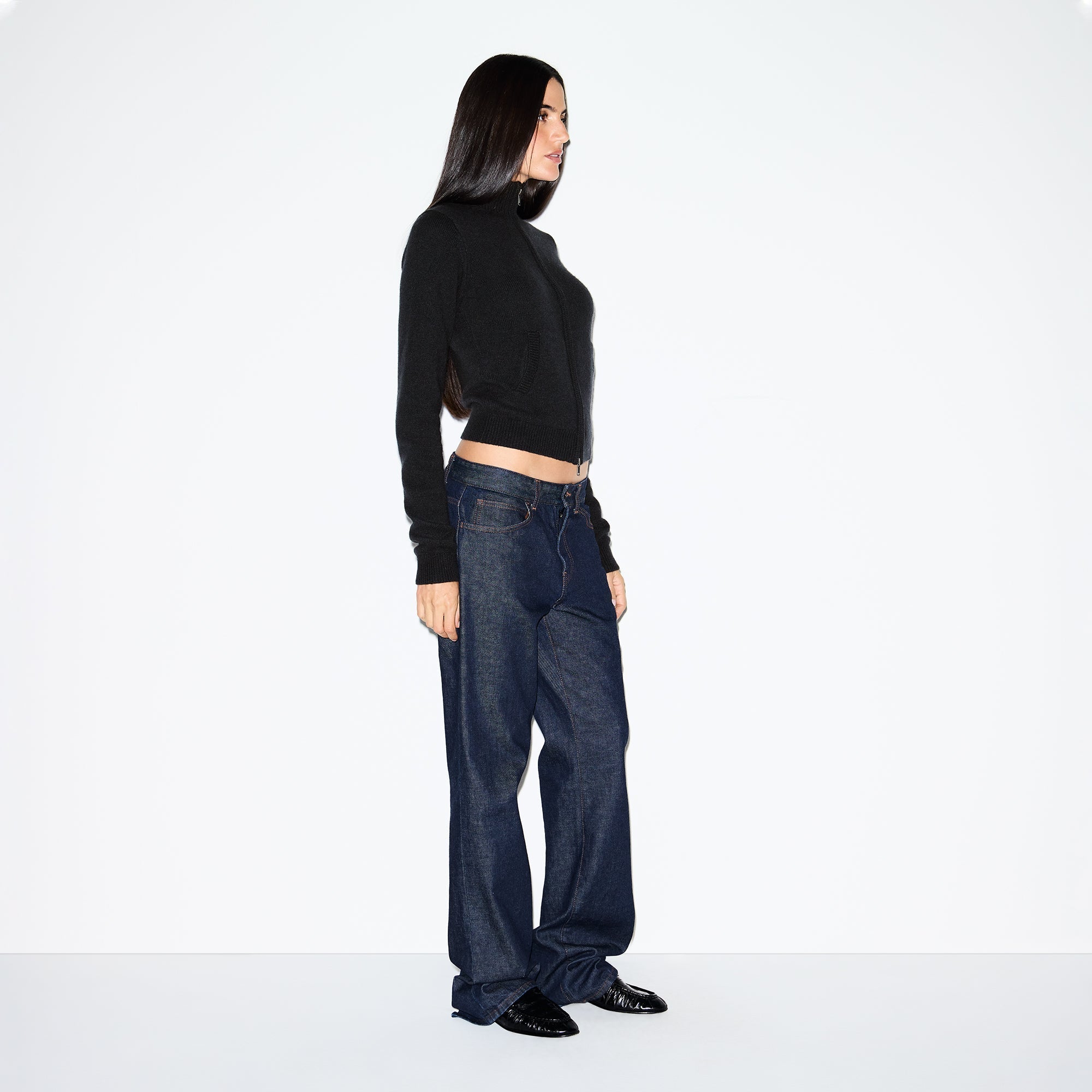 SKIMS WOOL CASHMERE ZIP UP MOCK NECK SWEATER | ONYX